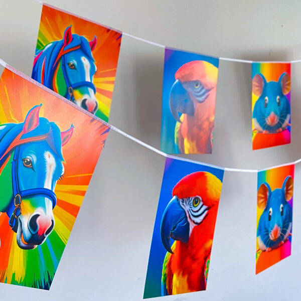 Chaque guirlande est 100 % personnalisable : choisissez parmi 21 formes (triangles, cœurs, étoiles, losanges…), importez vos visuels ou créez-les directement via notre outil de personnalisation.